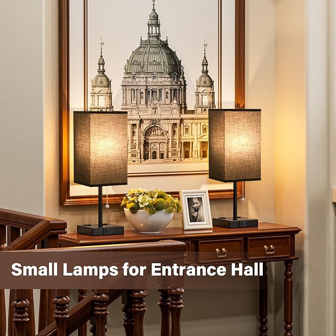 - 4. Plug and Play Chic Bedroom Lamps Set - Package included 2pcs non-flicker FREE E26 led light bulb (worth $15), 2pcs install-free square cream flaxen fabric shade, 2pcs stable lamp body and classic black metal base. Put all together for a minimalism classic lamp is really perfect to decorate anywhere of your house. An ideal tableside lamp for bedroom, guest room, living room, study room, kids room, college dorm room for girls and boys, office room, desk, etc.