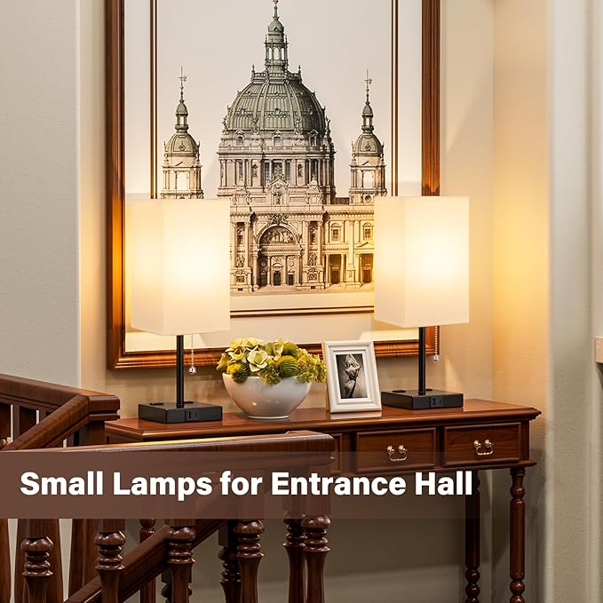 - 4. Plug and Play Chic Bedroom Lamps Set - Package included 2pcs non-flicker FREE E26 led light bulb (worth $15), 2pcs install-free square cream flaxen fabric shade, 2pcs stable lamp body and classic black metal base. Put all together for a minimalism classic lamp is really perfect to decorate anywhere of your house. An ideal tableside lamp for bedroom, guest room, living room, study room, kids room, college dorm room for girls and boys, office room, desk, etc.