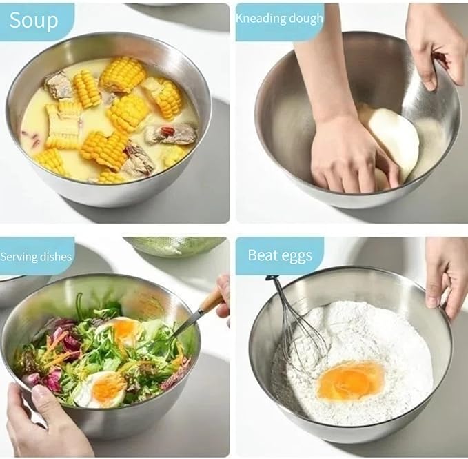 MANHONGYU Stainless Steel Mixing Bowls Set for Kitchen, Dishwasher Safe Nesting Bowls for Cooking, Baking, Meal Prepping, 4 - Piece