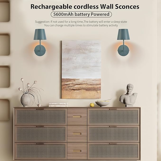 - Simple Design:Cordless LED wall lamp ,The wall sconces is crafted rom high quality metal, Crafted with exquisite craftsmanship ensuring durability and aesthetics, combining a matte circular design this wall sconce seamlessly blends into your room,offering a stylish and minimalist addition to any living space