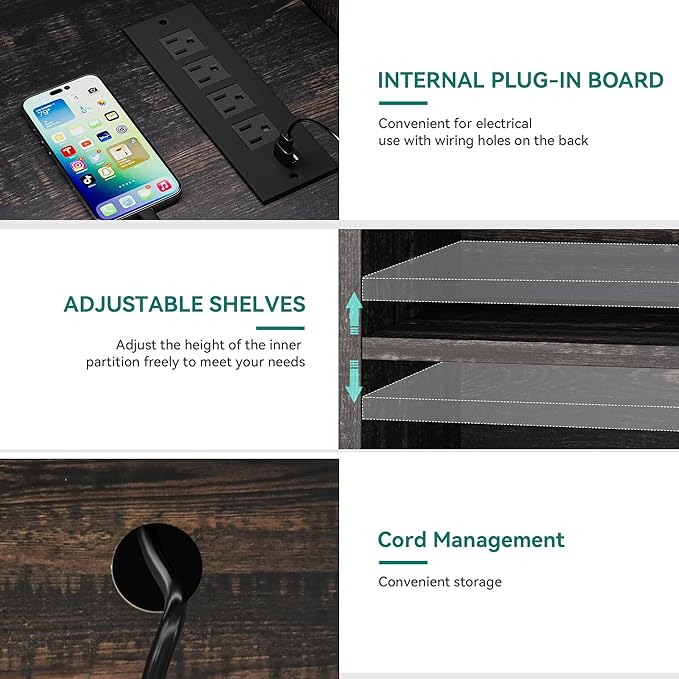- Effective Cable Management: Large cutouts with pre-drilled holes to organize and prevent tangling of cords, ensuring a neat and tidy appearance