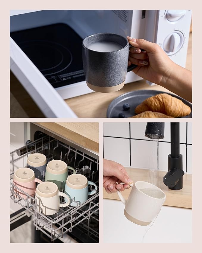 - Safe to use: The ceramic coffee mugs are made of food-grade glaze and fired at 2340°F for 13.5 hours, making the mug set stronger, more durable, lead-free, cadmium-free, eco-friendly and healthier