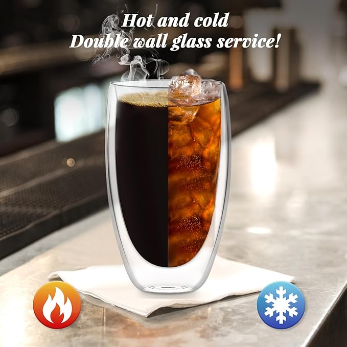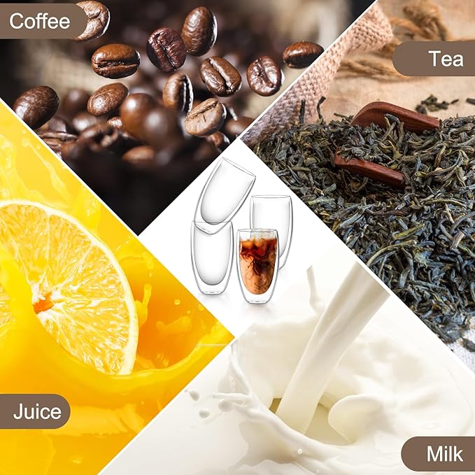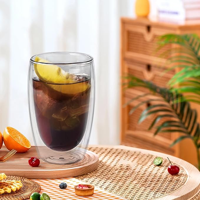 - Double Wall Glass Cup: The 16oz double-layer glass design has a smooth surface. Whether you prefer hot or cold drinks, trust LYTDMSKY's 4pcs insulated coffee mug set to keep your drinks at the ideal temperature and ensure your pleasant drinking experience