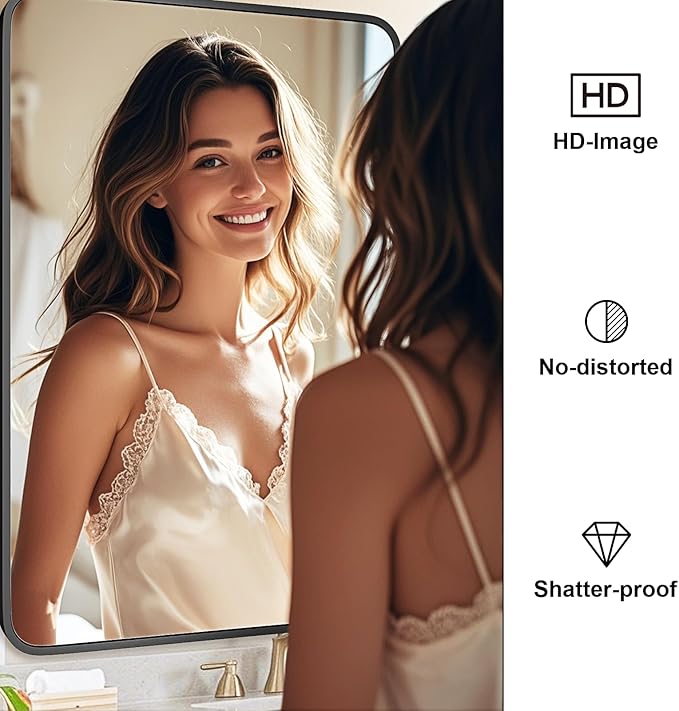 - ✅【Crystal-Clear Reflection – See Yourself Better】 Made with high-definition glass, our modern bathroom vanity mirror delivers a sharp, true-to-life reflection without distortion. Whether you're applying makeup or getting ready for the day, enjoy a clean, bright view every time.