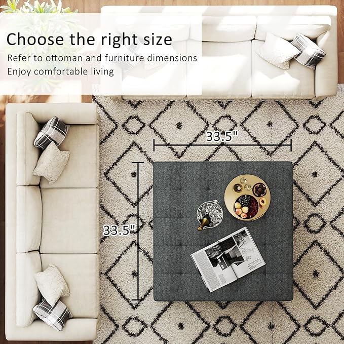 - Ottoman Coffee Table Size:33.5" Wx33.5" Dx18.5" H. Easy to bear 400 pounds