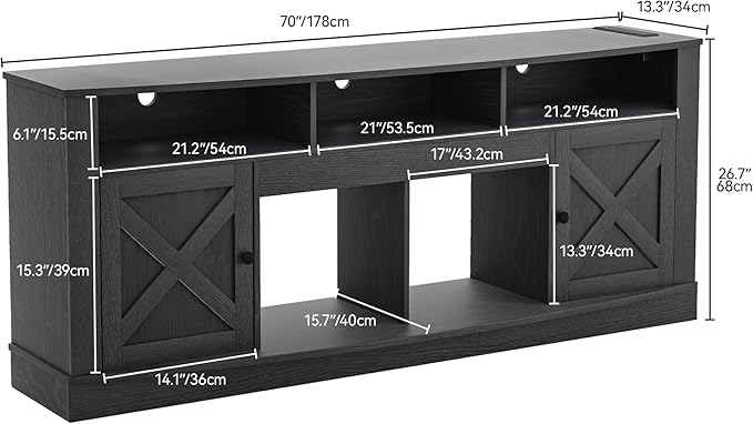 - Farmhouse TV Cabinet: Embodying a farmhouse aesthetic, this contemporary TV stand with a curved tabletop can accommodate TVs up to 80 inches, making it a versatile centerpiece for the family living room