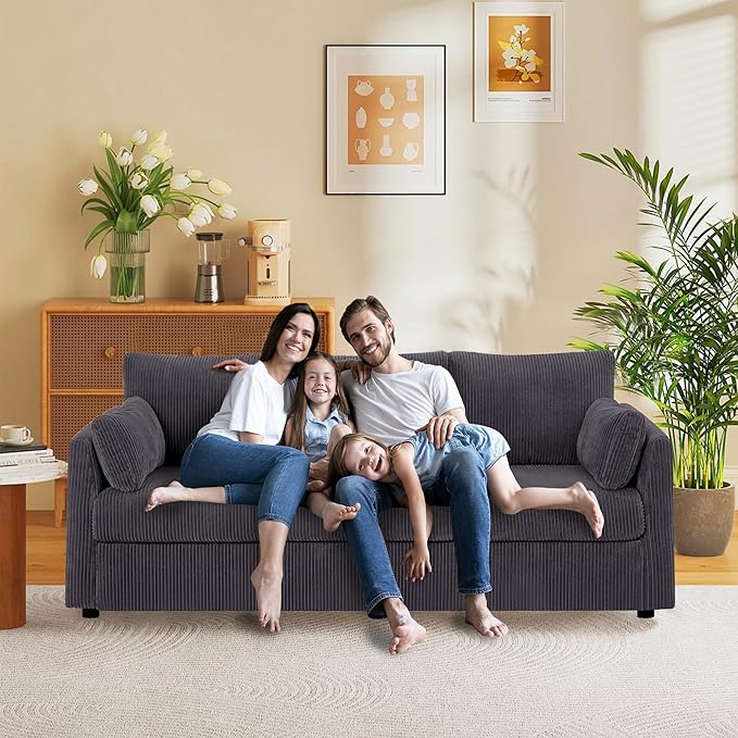 - 【Easy Assembly Couch set】 2 People needed for assembling ,it will take about an hour to assemble. This corduroy sofa packed in one package . Vacuum Packaging for all cushions ,Pls wait 48~72 hours after unpacking the coushions for resilience. Contact us anytime on Amazon for any question .