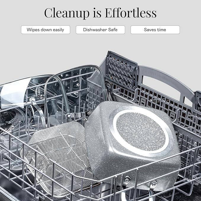 - EASY TO CLEAN: Granitestone cookware is designed for an effortless wipe down after using and is completely dishwasher safe allowing you to simply throw your cookware and bakeware in the dishwasher after using for a quick and easy cleanup experience.