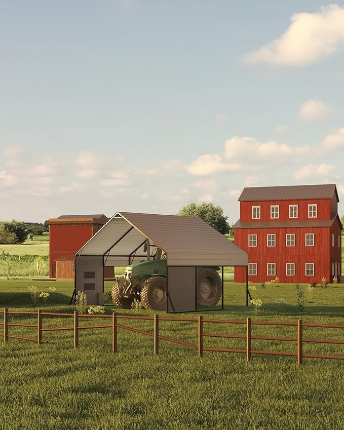 - Industrial Multi-Use Shelter: Accommodates box trucks (12.7ft height), farming implements, or bulk material storage. Its innovative design effortlessly converts into a garden shed—with sidewall fabric panels that let you create a secure space for gardening tools, outdoor equipment, or extra storage—all included in one smart package