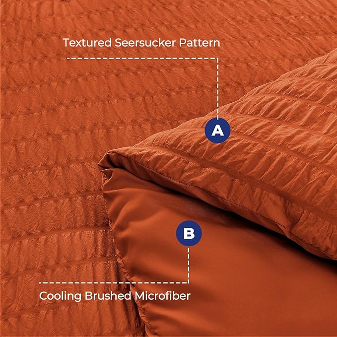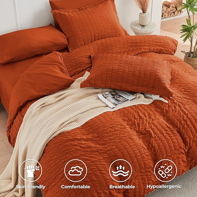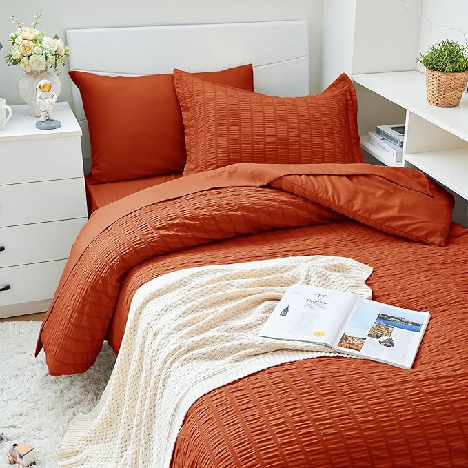 HYMOKEGE Burnt Orange Twin XL Comforter Set Seersucker 5 Pieces, All Season Luxury Bed in a Bag for Bedroom, Bedding Set with Comforter, Sheets, Pillowcase & Sham