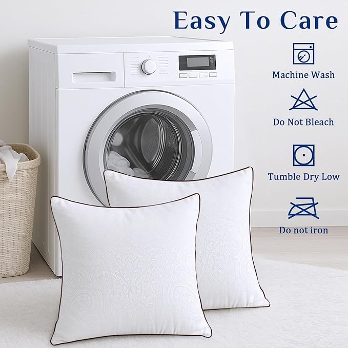 - BREATHABLE & MACHINE WASHABLE PILLOWS: Filled with micro polyester fiber which makes the pillows fluffy and cozy. Quality shell ensures the pillow is breathable and skin-friendly. Machine washable capabilities enable Maintenance of its reusability and fresh appearance. Air dry or tumble dry after washing