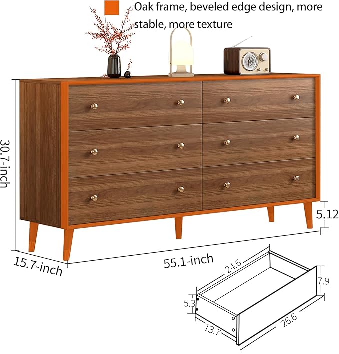 - Elegant and Modern Design: Featuring sleek lines and a versatile style, this 6-drawer dresser complements any home decor, from modern to mid-century aesthetics. The beveled edges and hand-polished finish add a touch of luxury, making it a perfect addition to your bedroom, living room, or home office.