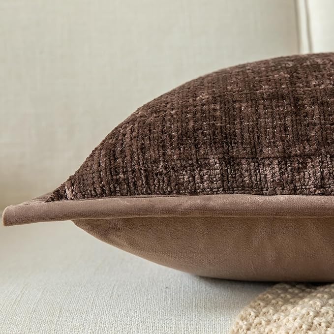 Yaertun Pack of 2 Chenille Textured Decorative Throw Pillow Covers Accent Solid Cushion Cover Soft Cozy Pillow Case with Velvet Back for Couch Sofa Bed Living Room 12x20 Inch Coffee