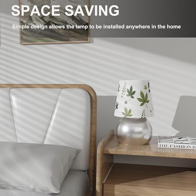 Set of 2 Small Silver Bedside Table Lamp with Maple Leaf Pattern Shade (Bulb Included)