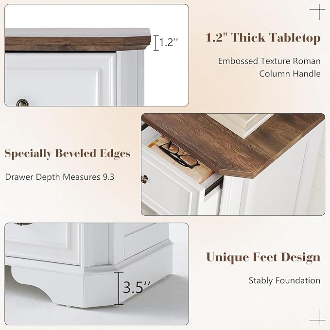 - Unique Beveled Design: The chest of drawers adopts a retro relief design and beveled corner design, and is equipped with stylish Roman column handles, making the entire drawer drawers exude a refined and elegant atmosphere.