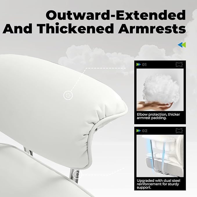 - 【Durable and Stable Construction】Equipped with a BIFMA-certified five-star base that supports up to 300 lbs, and an SGS-3 gas lift certified for over 120,000 lift cycles. Compared to nylon armrests, the metal armrest frame offers superior strength and durability. The wide seat and high backrest accommodate users of various body types.