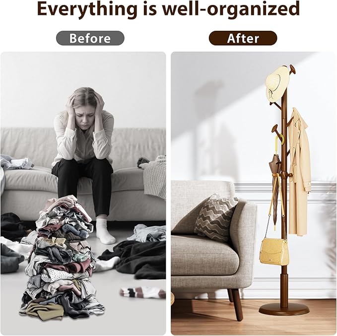 - Easy Installation - Long-Lasting: Our natural solid wood coat rack comes with detailed installation tools and instructions for quick and easy assembly, making it a simple and fun DIY project. Adjustable height also suitable for children's rooms