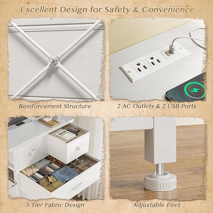 - Convenience with Charging Station : Charge your devices with a built-in station on this tall dresser, this dresser for bedroom is designed with 2 power outlets and 2 ports, so you can easily charge your TV and other media devices without the need for extra extension cords while organising your space with ease with our fabric dresser