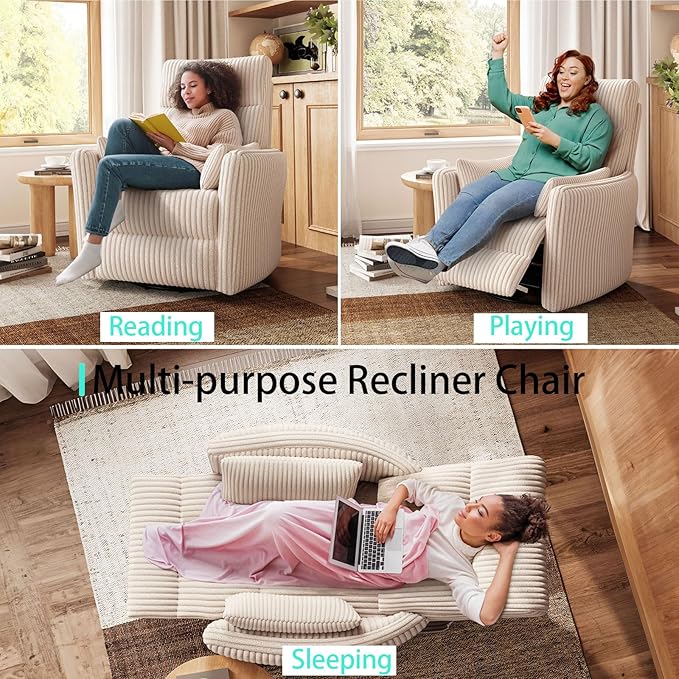 - Versatile Adult Recliner Chair: Our recliner features a 360 swivel base, 90°-150° adjustable backrest, adjustable footrest, and smooth 30 ° rocking motion. Whether you're sitting and reading or reclining and taking a nap, it can ensure the best angle for maximum comfort