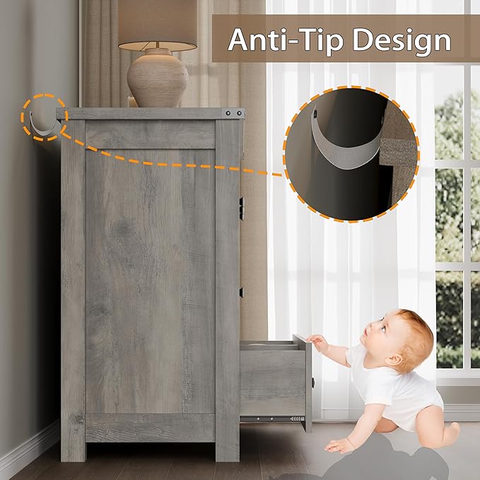 - Sturdy & Durable Construction: Made from high-quality engineered wood, BORNOON dresser is built for durability. The scratch-resistant surface maintains its sleek appearance, while the upgraded drawer track system ensures smooth, silent operation. A reinforced base and an anti-tip kit add stability and safety, making it a reliable choice for family homes.