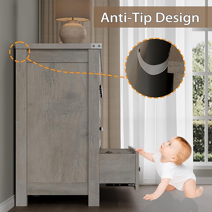 - Sturdy & Durable Construction: Crafted from premium engineered wood, this dresser boasts a scratch-resistant finish that withstands daily wear and tear. The reinforced drawer track system guarantees smooth and quiet operation, while a stable base and anti-tip kit enhance safety, making it a durable and secure storage solution for your home.