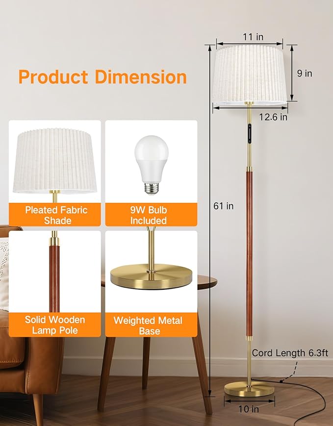 - Unique & Decorative: The modern standing lamp is made of high-quality solid wood and metal so that it has an elegant appearance. Use it at the bedside for a bright but not overwhelming reading light, or place the lamp a little further away so the shade's effect is greater and you have a nice ambience with soft, warm white light. The floor lamp works well with many decor styles such as mid-century modern, traditional, minimalist, urban, rustic and industrial styles. Dual use for light and decor