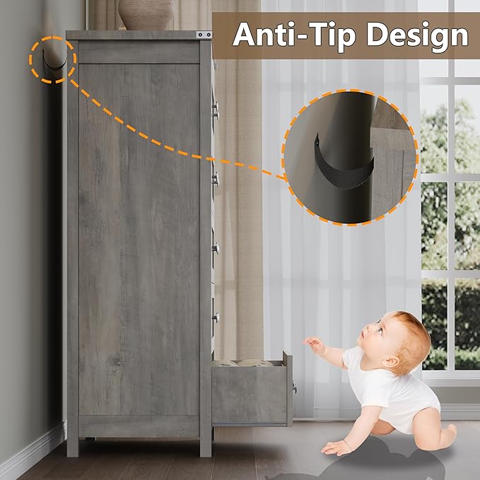 - Sturdy & Durable Construction: Made from high-quality engineered wood, BORNOON 5-drawer dresser is built to last. The scratch-resistant finish withstands daily use, and the reinforced bottom track system ensures smooth and quiet drawer operation. A stable base prevents wobbling, while the included anti-tip kit enhances safety, making it a secure choice for your home.