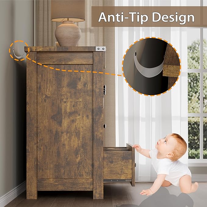 - Sturdy & Durable Construction: Crafted from high-quality engineered wood, BORNOON dresser is built to last. The scratch-resistant finish resists daily wear, while the upgraded bottom track system ensures smooth, quiet operation of the drawers. The dresser’s stable base prevents wobbling and offers secure storage for your belongings. Additionally, the included safety anti-tip kit provides added peace of mind, making it a safe choice for your family.