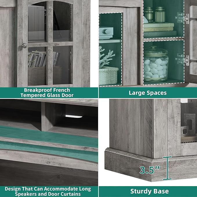 - Tempered Glass Doors: Entertainment center designed with durable tempered glass doors, allowing you to safely store and display your favorite collectibles