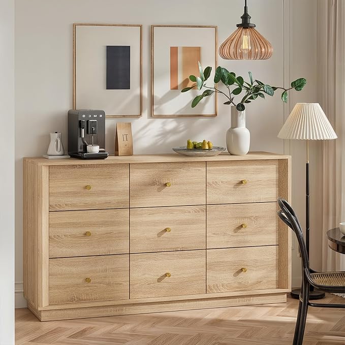 - 【Spacious and Stylish Storage Solution】Maximize your space and enhance your home decor with this 9 drawer dresser. Perfect for storing clothing, linens, and accessories, it is a functional and stylish addition to your bedroom, living room, or entryway. The large and deep drawers provide ample space to help you keep everything organized and within reach