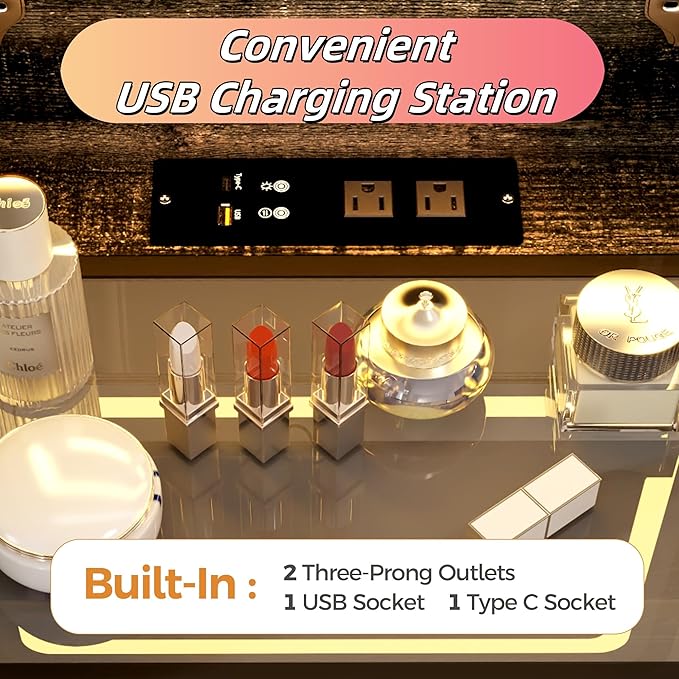 - Convenient USB Charging Station: Stay powered up with the built-in USB charging station, allowing you to charge your devices while you prepare. Keep your essentials within reach and fully charged, enhancing your daily routine