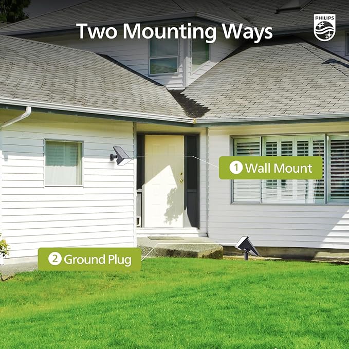 - 2 In 1 FUNCTION & EASY TO INSTALL -The Philips solar light offer dual functionality as both landscape spotlights and wall-mounted lights, giving you flexible lighting options for any outdoor space. No wiring, no hassle—just place, install, and enjoy instant ambiance!