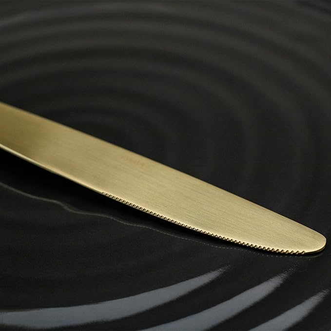 Alata Kate Champagne Gold Satin 40-Piece Silverware Set, Service for 8, Stainless Steel Flatware Set, Matte Polished Cutlery Set, Dishwasher Safe