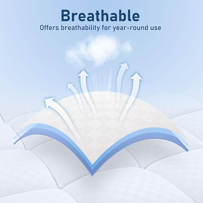 - 【Deep Pocket Mattress Pad】: This mattress pad has deep pocket skirt, it easily fits and grips any mattress up to 8-21". 360° all-around wrapping design, you can toss and turn randomly during the sleepy nights.
