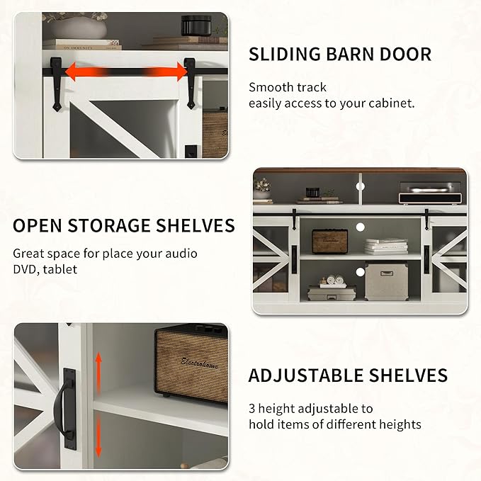 Farmhouse TV Stand,60-Inch TV Entertainment Center with Storage,Sliding Barn Doors and Adjustable Shelves,Suitable for TVs 24-70 Inches,for Living Room,Bedroom and Office