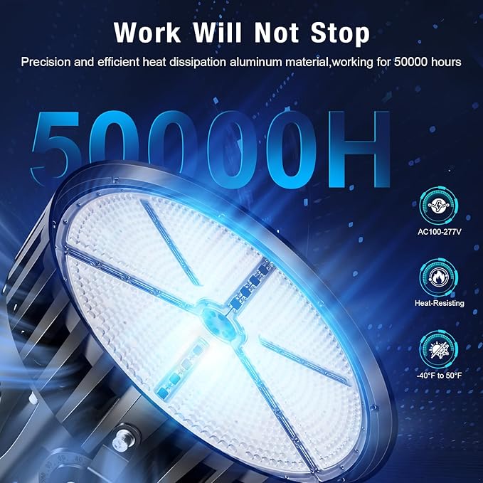 - Professional Sports Stadium Lighting: With a wide voltage range of AC 100-277V, it withstands grid fluctuations. Advanced circuit design and efficient heat dissipation materials ensure seamless operation. The heavy-duty chassis (18.90 x 18.90 x 12.79 inches) is a reliable choice for large-area high-altitude lighting