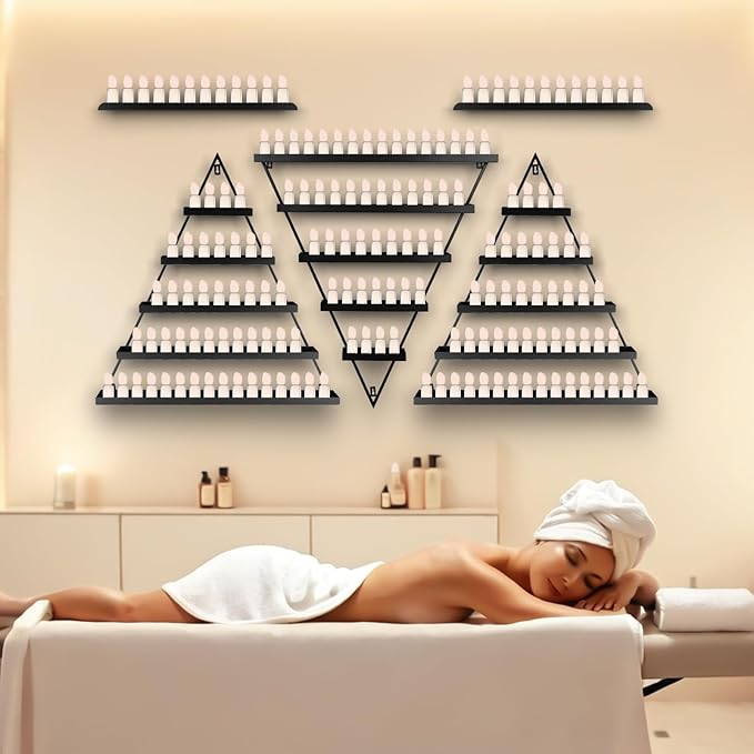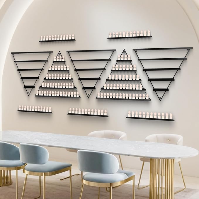 - Multi Function: The Triangular Shelves Are Not Only Suitable For Nail Salons But Also For Home Use, Spa, And Shop, Perfect For Interior Decoration, Do Not Take Up Much Space And Aesthetically Pleasing, Can Be Used To Accommodate Kinds Of Items Like Cosmetic Bottles, Perfume, Lipstick, Vase, Eyeglasses, Photo Frame, Etc.