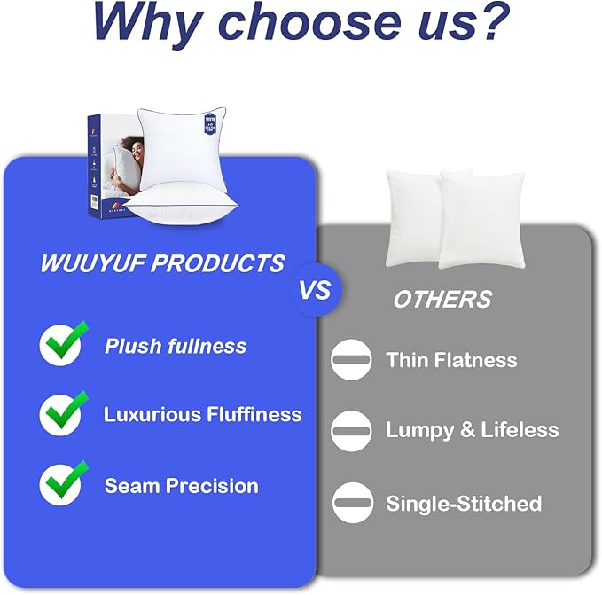- Premium Material: Firm 20 x 20 pillow insert feature virgin 7D fiber filling with 110gsm ultra-soft brushed fabric and reinforced blue corded piping. All components OEKO-TEX certified for skin-friendly comfort.