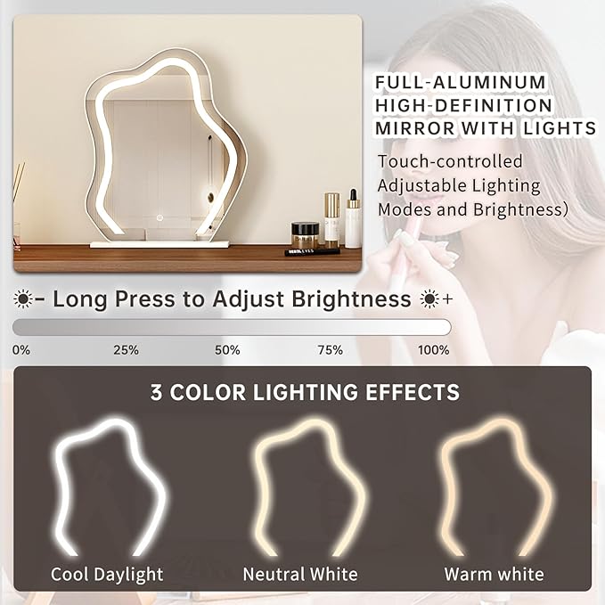 - ✨ Luxurious Makeup Vanity Desk with LED Mirror – Elevate Your Beauty Routine With Messenya Elegant Makeup Vanity Desk, Featuring a HD Touch Screen Mirror and Adjustable Lights (Warm/White/Cool Tones) For Flawless Makeup Application Day or Night.