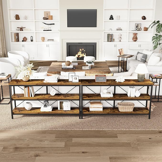 - Spacious Storage Space: This long sofa table measures 55.1" x 11.8" x29.5", with a wide desktop, and 3-tier design providing ample storage space where you can display your favorite photos, books, and decorations, organized bins