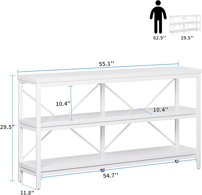 - Spacious Storage Space: This long sofa table measures 55.1" x 11.8" x29.5", with a wide desktop, and 3-tier design providing ample storage space where you can display your favorite photos, books, and decorations, organized bins
