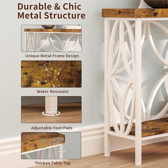 - Sturdy and Stable: Made of thickened top panel and a metal frame, the thick sofa table for entryway is built to last with a top bearing up to 200 lb. Adjustable feet ensure stability on any floor without damage, and the anti-tip kits prevent unnecessary wobbling for safer use