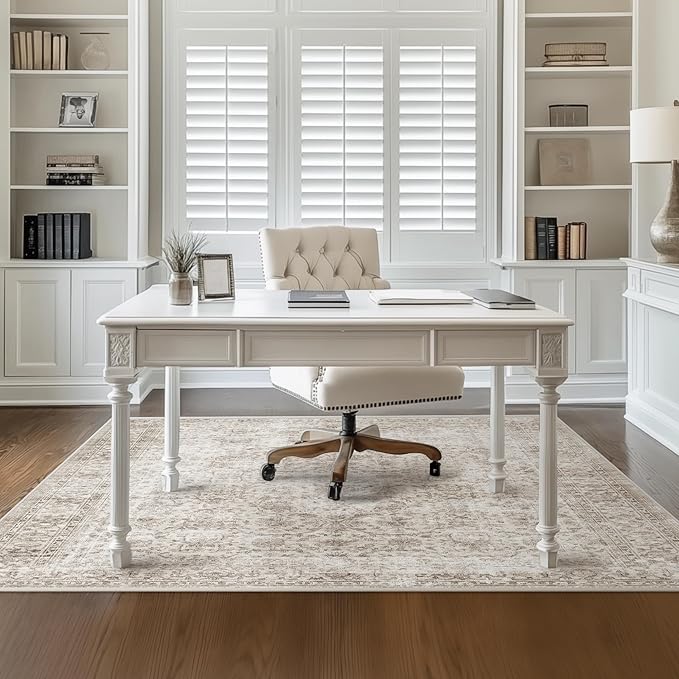 FMFUNCTEX 4x6 Washable Area Rug Neutral Vintage Beige Non Slip Low Pile Traditional Indoor Carpet for Living Room Bedroom Soft Retro Floral Mat Throw Rug for Dining Office Kitchen Dorm Entryway
