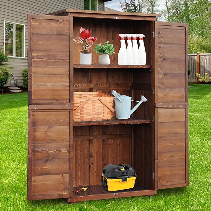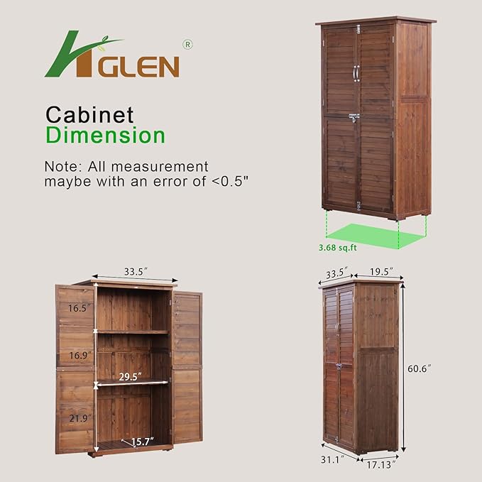 - Removable Shelves: YTGLEN outdoor wooden storage cabinet comes with 2 removable shelves, providing 3 storage layers for all your gardening tools and equipment; Keep everything organized and easily accessible
