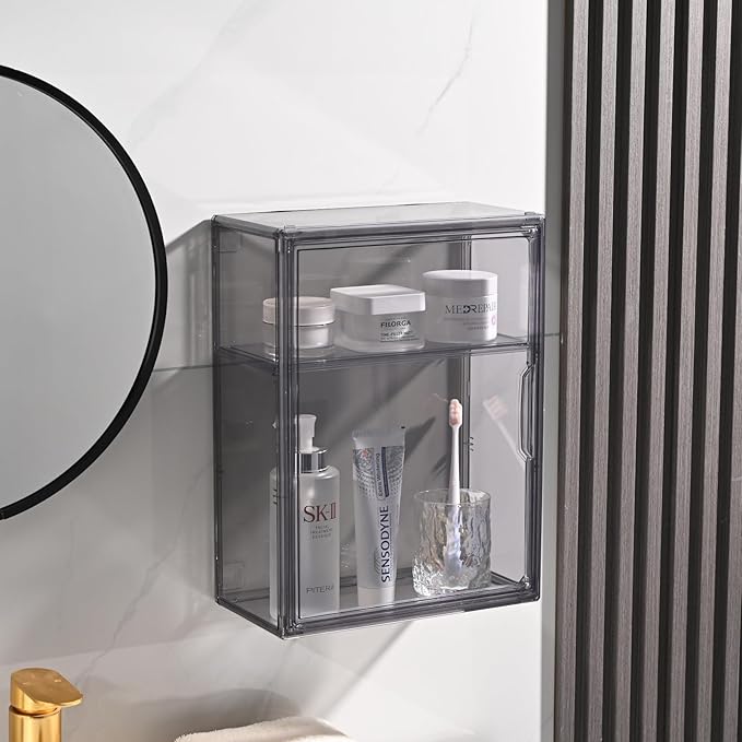 2PACK 3 Tiers Acrylic Display Case with 2 Division Boards, Acrylic Storage Organizers Box with Magnetic Door, Wall-Mounted Dustproof Showcase for Makeups, Purses, Figure