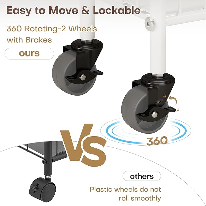 - EASY TO MOVE: This storage cart on wheels has 4 easy-to-glide, durable wheels, 2 of which are lockable so you can slide it however you want. Even though it is heavy, you can move it easily. Convenient for your storage.