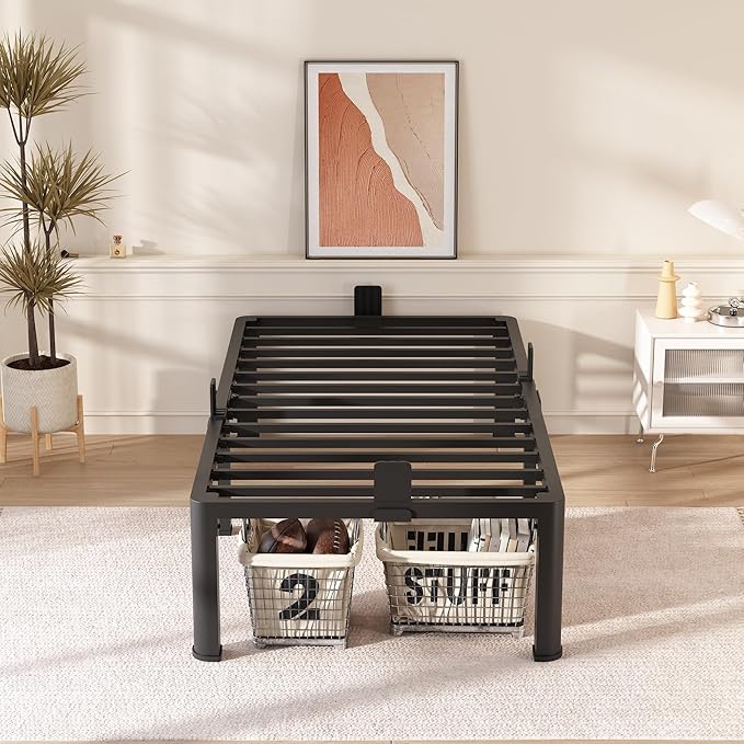 - Storage Space:16 inches high twin xl size bed frame with 14.4 inches of bed storage to store more debris.The black twin bed frame makes your room look more cleaner and tidier.