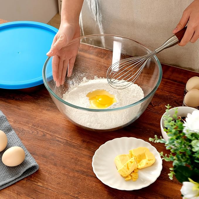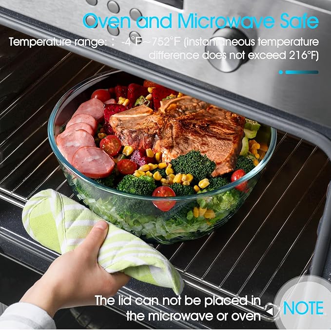 - 【Sleek and Compact Storage】: With its lid securely in place, this large glass mixing bowl doubles as a storage container, keeping your food fresh