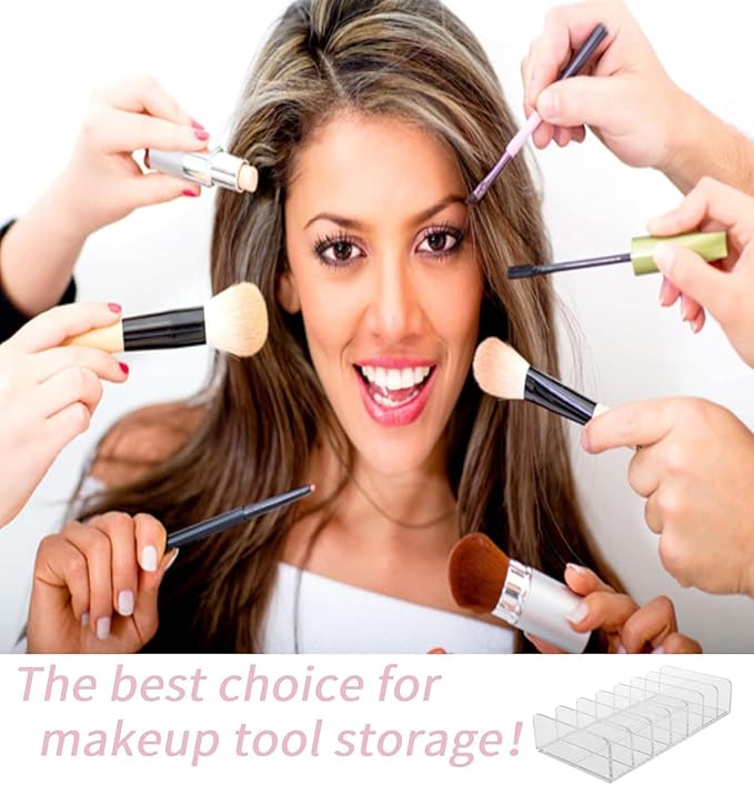 - 【Perfect Storage】Bathroom sink dressing table tray can meet all your cosmetic storage,makeup eye shadow display rack suitable for foundation, eye shadow, contour pan, lip gloss kit, blush pan, lip gloss pan, eyebrow kit, etc. The transparent divider ensures that your favorite makeup stays upright and is always visible and easy to reach