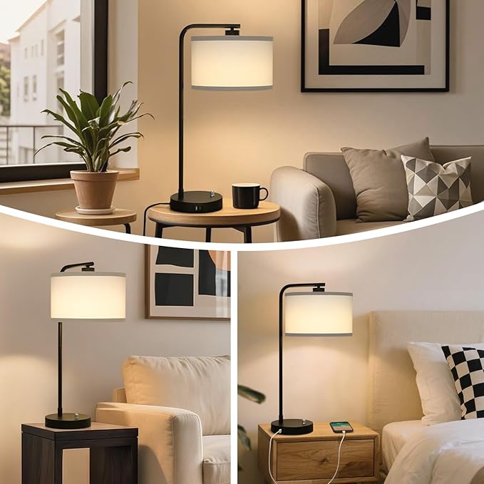 - Modern & Farmhouse Style: Pairing subtle contemporary inspiration with slender silhouette and hardback drum shade, this collection will bring a sense of mid-century and modern charm to your living space. Using practical cantilever design, our bedroom lamp can offer a perfect sized lampshade with small footprint on the tabletop to you.